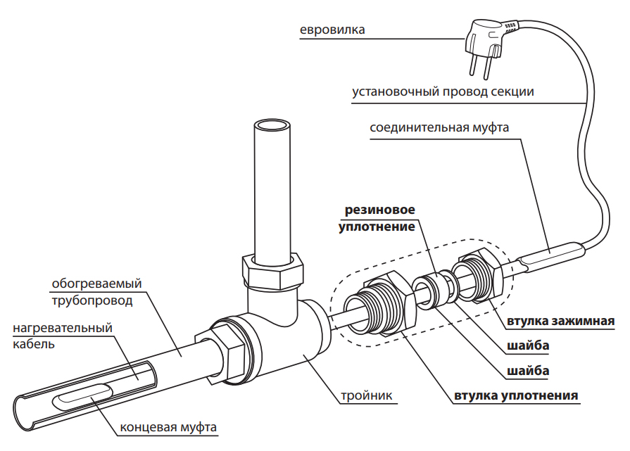 Секция нагревательная кабельная Freezstop Inside DACHA-10-6 в трубу