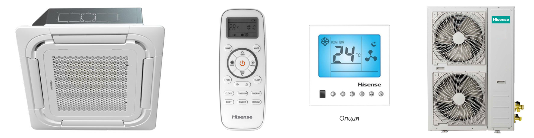 Полупромышленный on-off кондиционер кассетного типа, встраивается в подвесную подпотолочную конструкцию. Применяется в офисных, торговых помещениях, гостиницах, медицинских центрах и др.