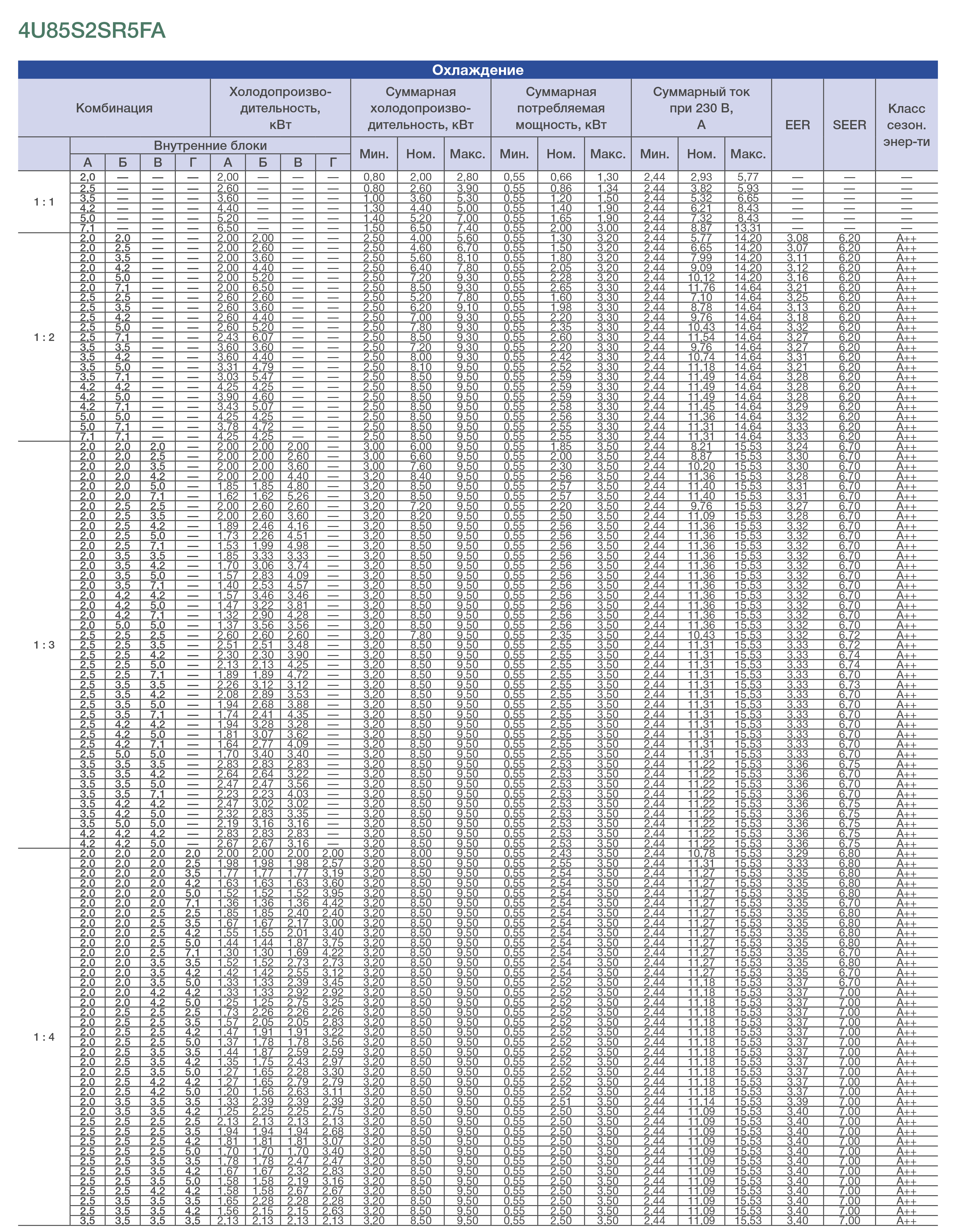 Рассчитан на подключение 4 внутренних блоков. Подобрать внутренние блоки для данной модели можно здесь.