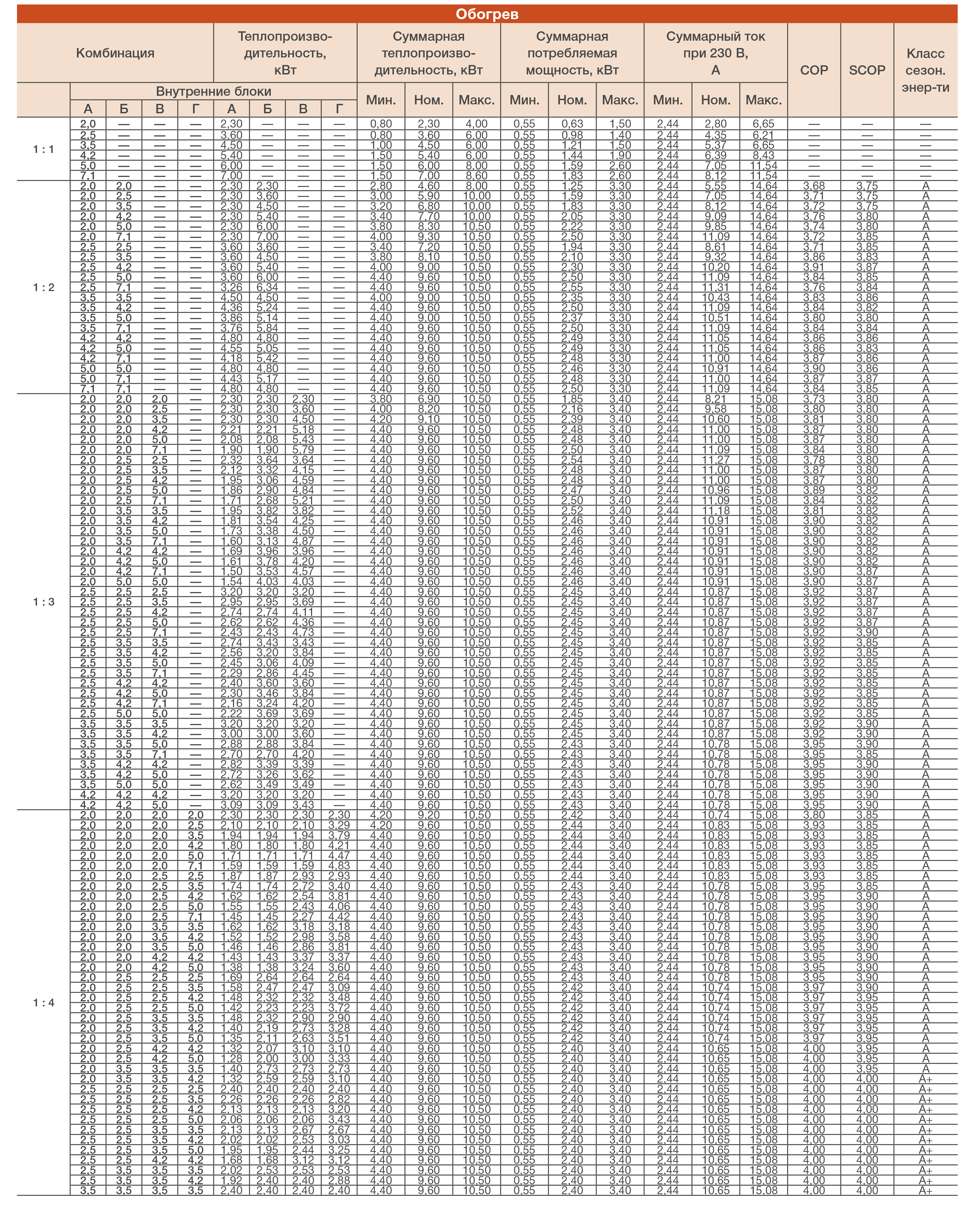 Мощность в режиме обогрева