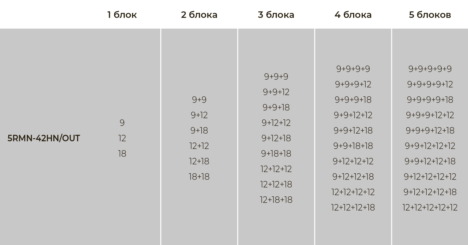 Общая площадь охлаждения до 120 кв.м, комбинации внутренних блоков подбираются индивидуально.