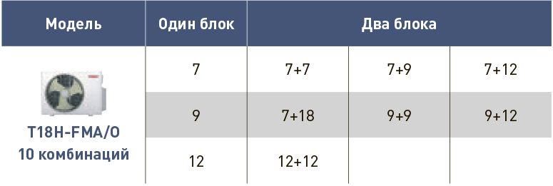 Общая площадь охлаждения до 50 кв.м, комбинации внутренних блоков подбираются индивидуально.