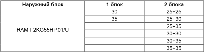 При подключении нескольких внутренних блоков, суммарная производительность которых превышает номинальную мощность наружного блока, при одновременной эксплуатации каждый из них будет работать со сниженной производительностью. Такой вариант подключения допускается в случае, когда внутренние блоки используются не одновременно (например, ночью – спальня, днем – гостиная).