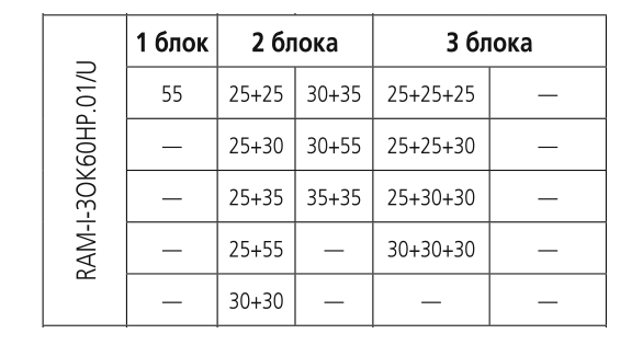 При подключении нескольких внутренних блоков, суммарная производительность которых превышает номинальную мощность наружного блока, при одновременной эксплуатации каждый из них будет работать со сниженной производительностью. Такой вариант подключения допускается в случае, когда внутренние блоки используются не одновременно (например, ночью – спальня, днем – гостиная).