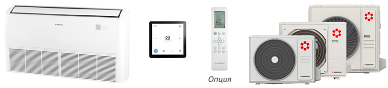 Сплит-системы напольно-потолочного типа Kentatsu KOMASU — универсальное решение, открывающее широкие возможности для монтажа в помещениях, где размещение встраиваемых кассетных и канальных блоков невозможно. Автоматическое качание жалюзи и заслонок делает распределение воздуха в помещении равномерным.
