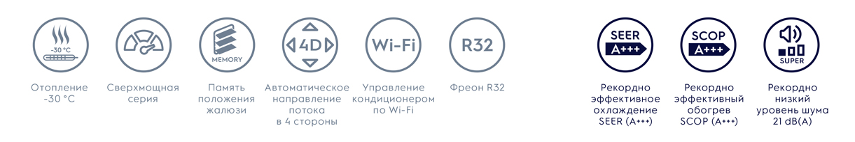• Wi-Fi управление (опция) дает возможность дистанционно управлять сплит-системой, не зависимо от места вашего нахождения. Все что вам нужно — мобильный телефон с установленным специальным приложением.