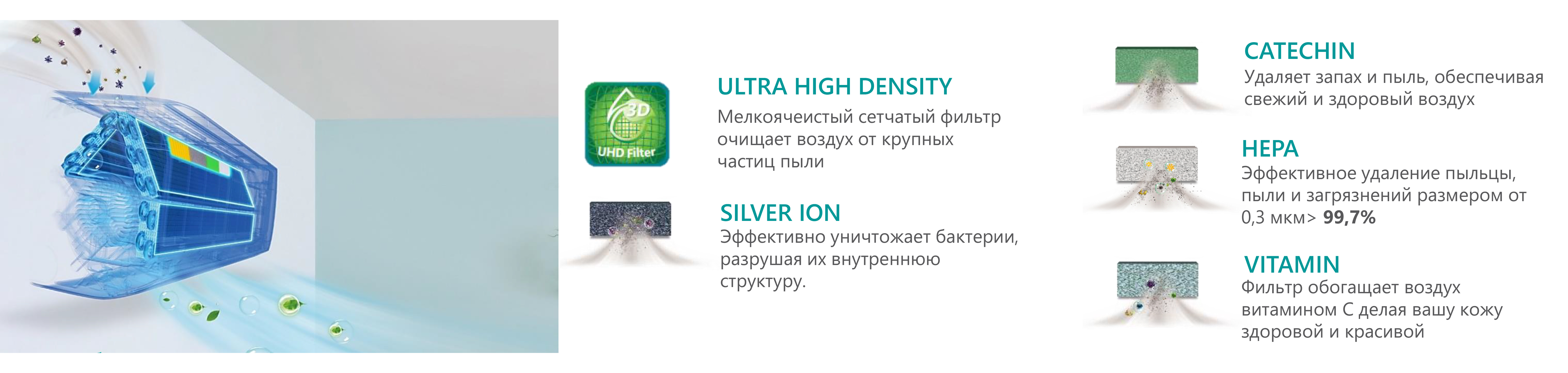 Многоступенчатая фильтрация, ионизатор, система самоочистки FULL Ice Clean — бережная забота о вашем здоровье. Wi-Fi-управление, функция iFeel, 7-скоростной вентилятор, 4 режима сна, и множество других функций обеспечивают максимальный комфорт и удобство пользования для владельца. Высокий класс сезонной энергоэффективности (А+++) — дополнительная экономия при использовании.
