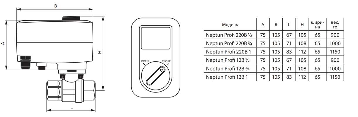Шаровой кран с электроприводом Neptun Standard 230В 1/2"