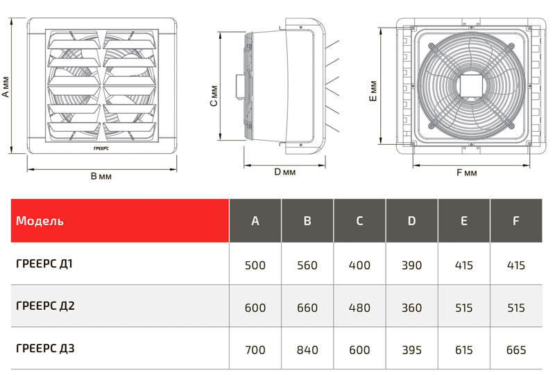 - Трехскоростной вентилятор — ГРЕЕРС Д оснащены современными трехскоростными двигателями. Степень защиты IP54 позволяет применять аппараты в разных типах помещений.