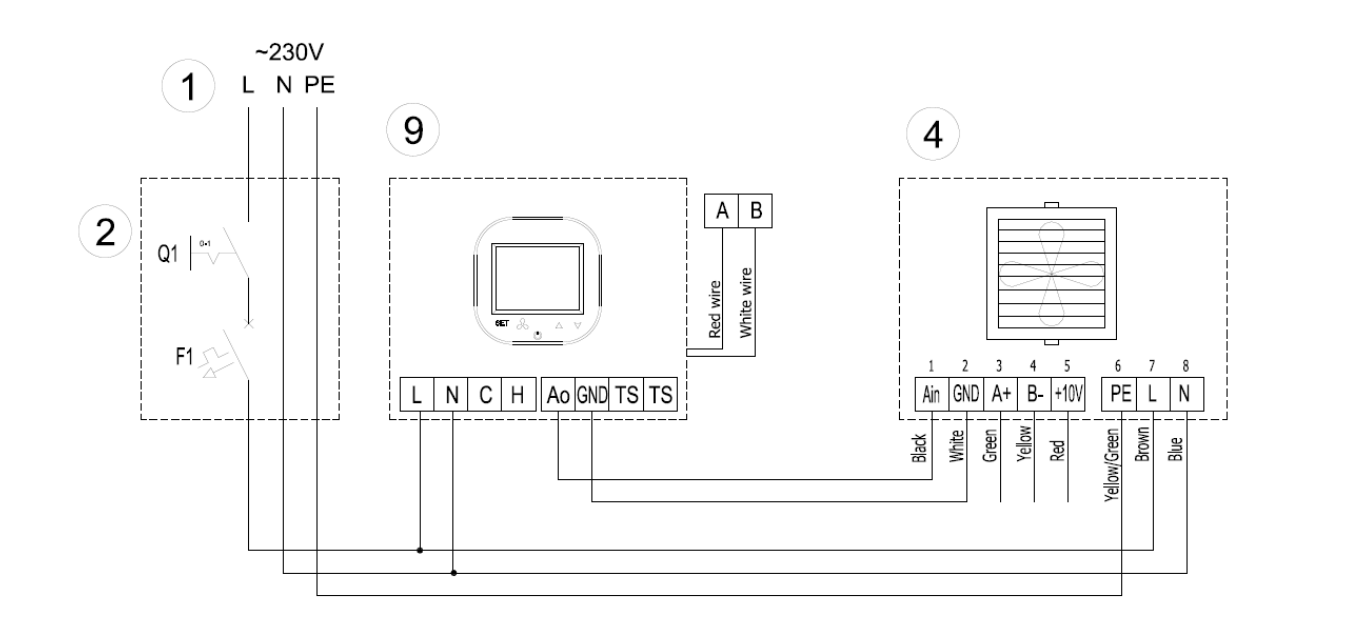 Он имеет интерфейс с протоколом связи Modbus RTU для легкой интеграции с системами автоматизации зданий (BMS). Контроллер обеспечивает плавное регулирование частоты вращения двигателей EC, а также управляет работой в режимах обогрева, охлаждения и вентиляции. Устройство имеет специальный режим Antifrost защиты от замерзания теплоносителя. Благодаря встроенному термостату или внешнему датчику температуры, контроллер позволяет задать параметры работы на неделю (индивидуально для каждого дня, 4 периода нагревания в сутки). Внешний датчик температуры обеспечивает свободный выбор места измерения температуры в помещении. Датчик определяется автоматически. Его подключение автоматически переводит контроллер в режим работы с внешним датчиком температуры. Контроллер позволяет выбрать следующие режимы: