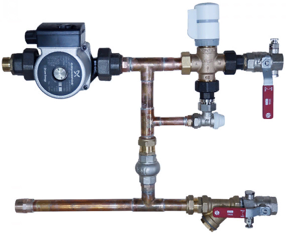 Рекомендуется применять данную схему при разнице давления между прямой и обратной ветвями ориентировочно более 40 кПа