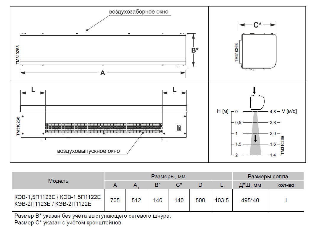 • Длина завесы 705 мм.