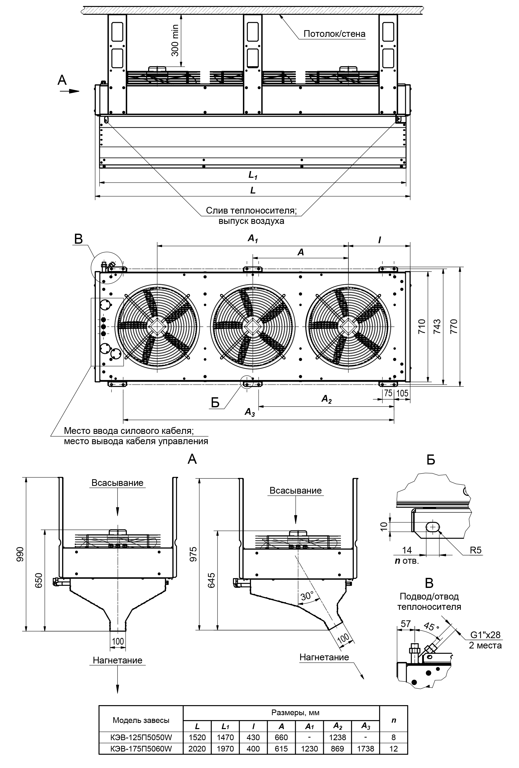 | Регулирование подводимой тепловой мощности в зависимости от температуры воздуха внутри помещения | Защита теплообменников от низких температур | Регулирование теплоотдачи завесы для поддержания заданной температуры в помещении | Включает завесу при открывании ворот | Блок подключения |