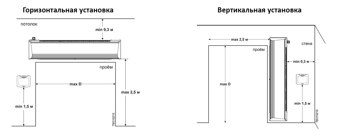 • Устанавливается над дверными проемами на высоте не более 2,5 метров.