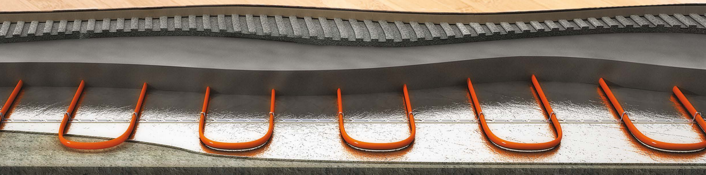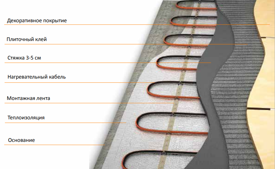 - Монтаж производится в слой цементно-песчаной стяжки 3-5 см