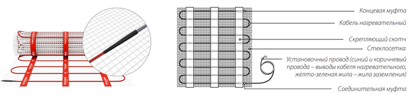 • Тонкий нагревательный мат: толщина кабеля около 3,5 мм, не поднимает уровень пола