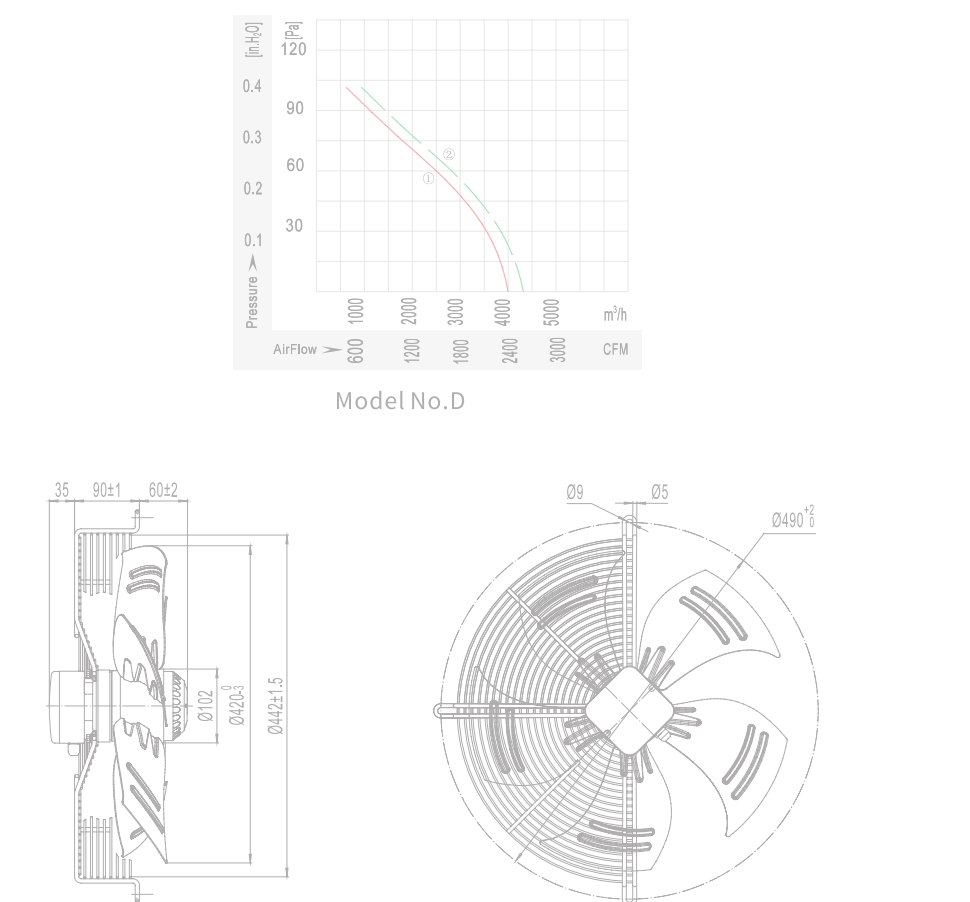 Трехскоростной осевой вентилятор модель: YWF.A4S-420B-5DITR6