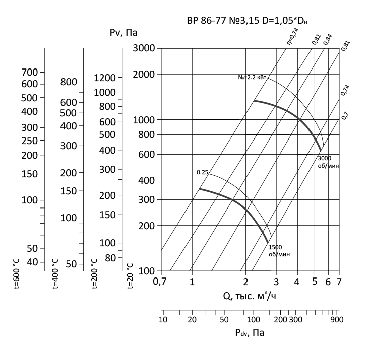 Радиальный вентилятор низкого давления ВР 86-77 / №3,15 / 2,2 кВт / 3000 об./мин. / Прав / 0°